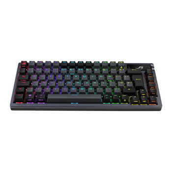 Transcend The Limits ROG Azoth is a 75% gaming keyboard bristling with DIY features traditionally found on premium custom keyboards. A metal top cover with silicone gasket mount and three-layer dampening, hot-swappable, pre-lubed ROG NX Red mechanical switches and keyboard stabilizer, ROG PBT doubleshot keycaps and bundled switch lube kit combine to create unprecedented typing experiences. ROG Azoth also has an OLED display with intuitive controls, versatile tri-mode connectivity with SpeedNova wireless technology in 2.4 GHz mode, three adjustable tilt positions, and MacOS support.
