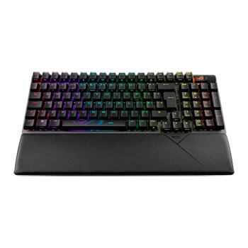 Maxed-Out Gaming Versatility ROG Strix Scope II 96 Wireless is a full-function gaming keyboard packed into a 96% efficient layout to free up your desk space. Get ready for a premium experience with maximum versatility and unlimited options for customization. It features a tri-mode connection with ROG SpeedNova wireless technology and ROG Omni Receiver. It comes with hot-swappable pre-lubed ROG NX Snow mechanical switches and a unique silicone dampening foam design with integrated switch dampening pads for a great typing experience. It also features hotkeys for Xbox Game Bar and recording functions, and intuitive multi-function button with multiwheel. It also offers three tilt angle adjustments and a detachable wrist rest.