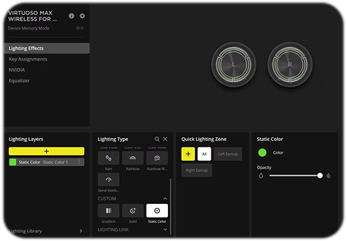 ILLUMINATION & MONITORINGPowerful CORSAIR iCUE software enables custom audio equaliser settings, SoundID personalised audio, Dolby Atmos, and more.