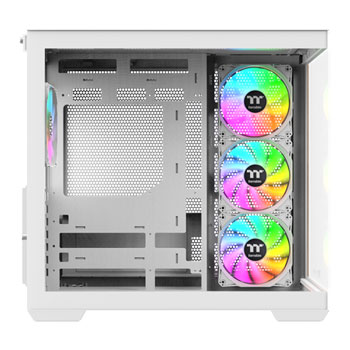 a visual spectacle The Thermaltake View 380 WS ARGB Mid Tower Chassis balances style, cooling performance, and hardware compatibility in a versatile design. Built with dual 3mm tempered glass panels, it provides a clear showcase of your components while ensuring durability. The case includes three 120mm ARGB Lite Reverse fans on the right intake and one 120mm ARGB Lite fan at the rear exhaust, delivering efficient airflow and vivid RGB illumination right out of the box. With broad fan and radiator support, seven expansion slots, and a clean internal layout, the View 380 WS ARGB is ideal for gamers and creators seeking a refined, performance-ready mid tower.