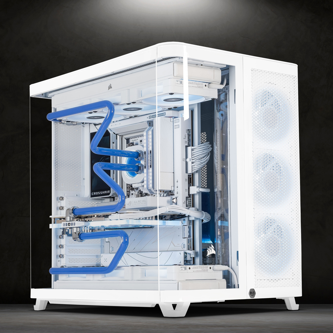 The 3XS Glacier Fluid is a fully custom water-cooled gaming PC that features frosted tubing. Featuring an AMD Ryzen 9 9950X3D2 and a 32GB ASUS GeForce RTX 5090 TUF GAMING OC graphics card, all kept cool and quiet by the custom water-cooling loop. Also included is 32GB of Corsair Vengeance RGB 6000MHz DDR5, an ASUS ROG STRIX X870-A GAMING WIFI motherboard and a 2TB Samsung 9100 PRO PCIe 5.0 NVMe M.2 SSD.