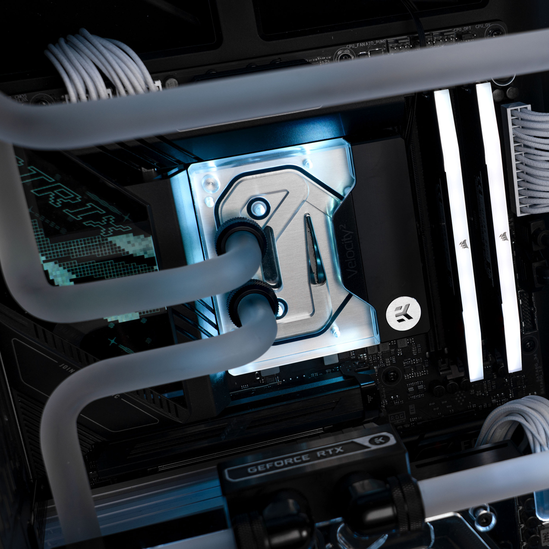 The 3XS Dynamic Fluid is a fully custom water-cooled gaming PC that features an EKWB distribution plate as its centrepiece. Featuring an Intel Core Ultra 9 285K CPU and a 32GB ASUS GeForce RTX 5090 TUF GAMING OC graphics card, all kept quiet by the custom water-cooling. Also included is 32GB Corsair Vengeance RGB 6000MHz DDR5, an ASUS ROG MAXIMUS Z890 HERO motherboard and a 2TB Samsung 9100 PRO PCIe 5.0 NVMe M.2 SSD.