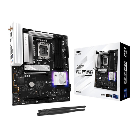 ASRock B860M Pro RS WiFi, Intel B860, LGA1851, DDR5, PCIe 5.0, 3x M.2, 2.5GbE, Wi-Fi 6E, USB 3.2 Gen2x2, mATX