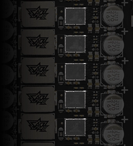 Pair with the ROG Thor III and ROG Strix Platinum Series PSU and enjoy reliable power for your graphics card. GPU-First enhances voltage stability by up to 45%, even during demanding gaming sessions and overclocking scenarios, helping to ensure peak performance for a more consistent gaming experience. Additionally, the integration of a GaN MOSFET boosts power efficiency by up to 30%.