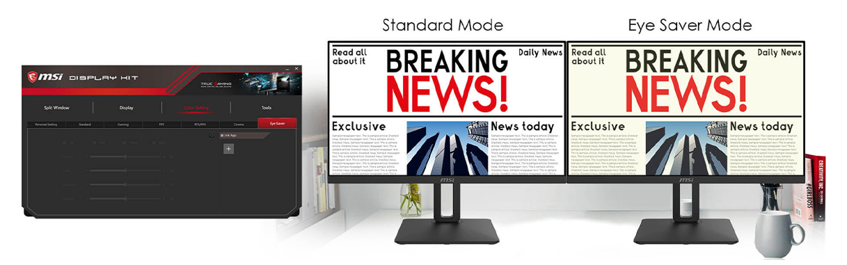 FLICKERING / DRY EYE / EYESTRAIN / READING GLASSES - Thanks to MSI Anti-Flicker technology, a stable output current for the monitor is provided. It will protect children’s immature eyes and also help against dry eyes and eyestrain.